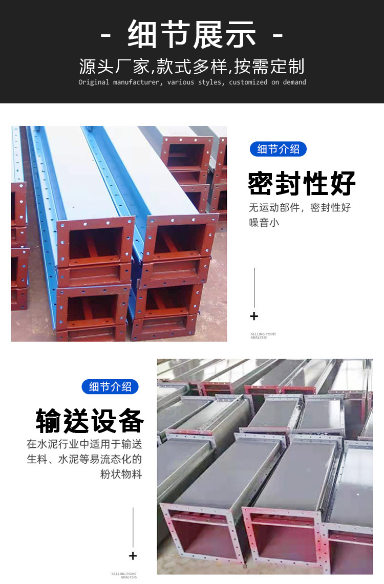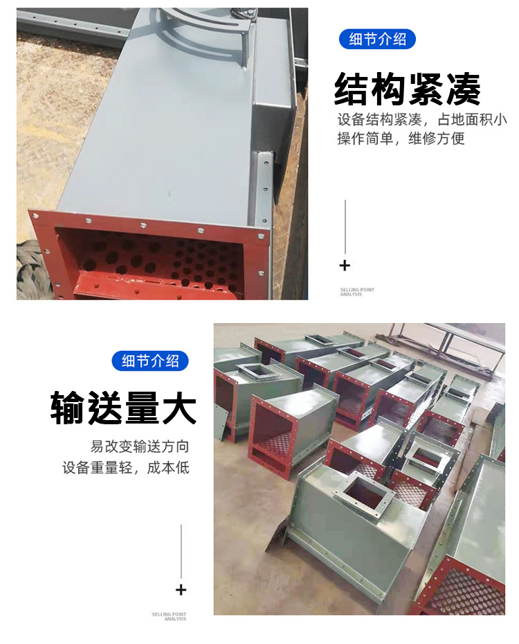 風送斜槽(也叫空氣輸送斜槽)通常用于水泥、粉煤灰等物料的力輸送設備。在輸送過程中沒有旋轉部件。與功能相同的輸送機相比,它具有維護方便、密封性好、無噪音、運行安全可靠、能耗低、輸送方向易于改變、多點進料和卸料等優點