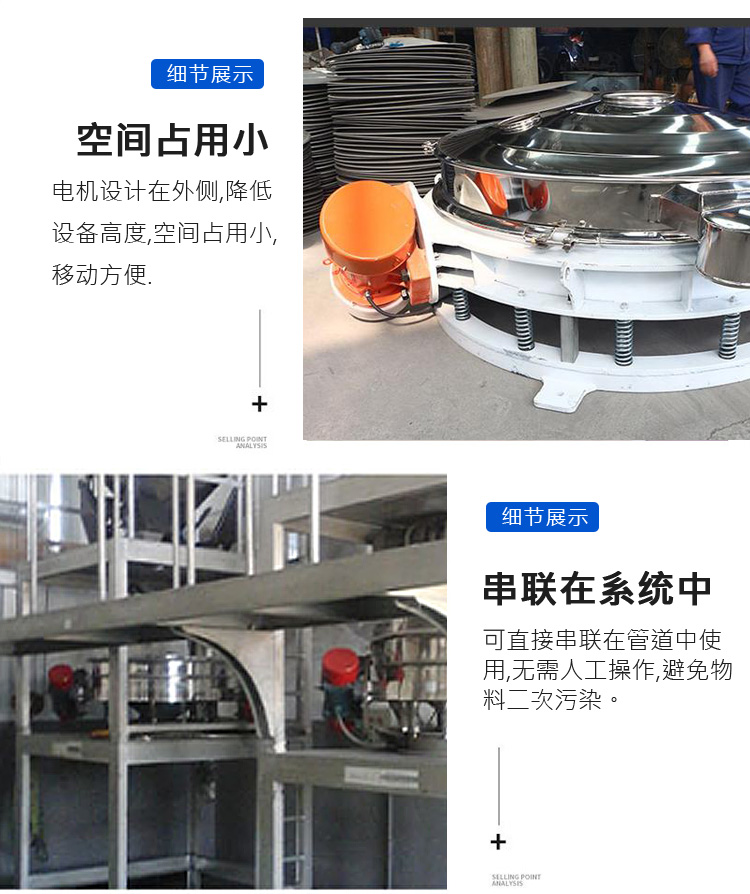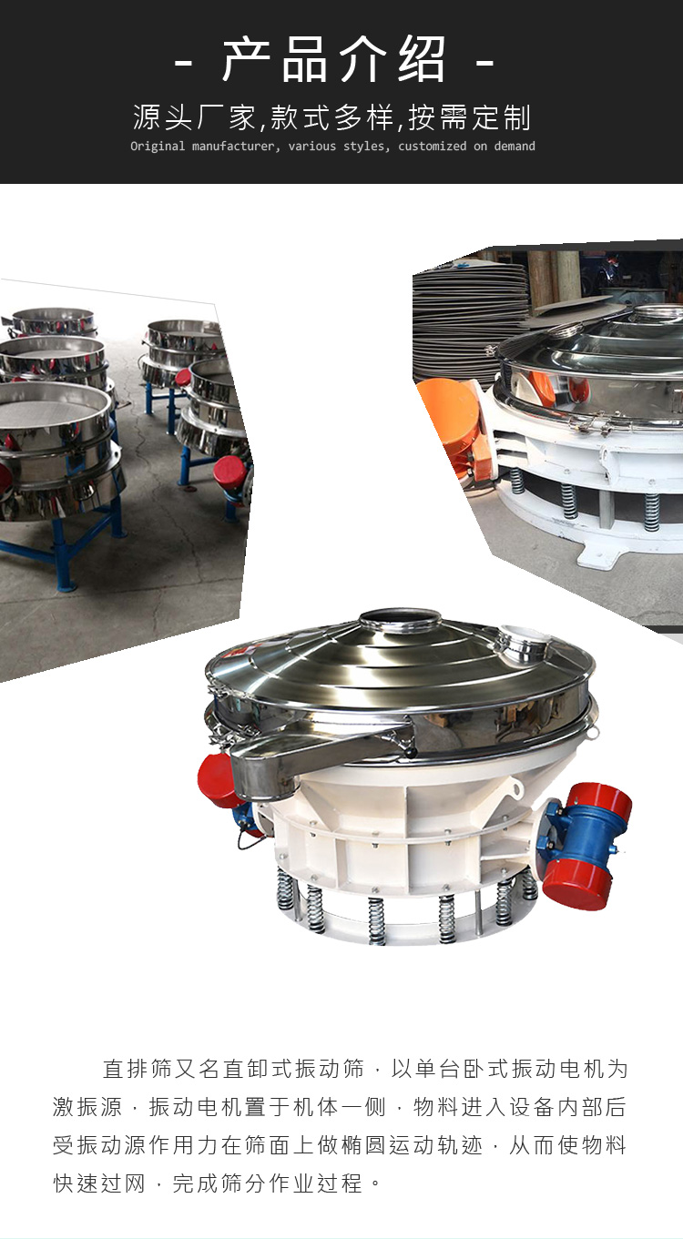 雙電機直排篩又叫直排篩,是以兩個振動電機作為激振源,進料口和出料口在同一垂直方向,極大提高了篩分效率。
