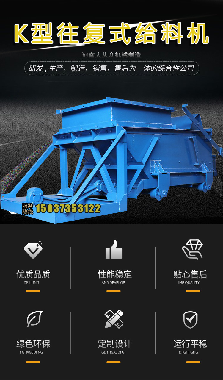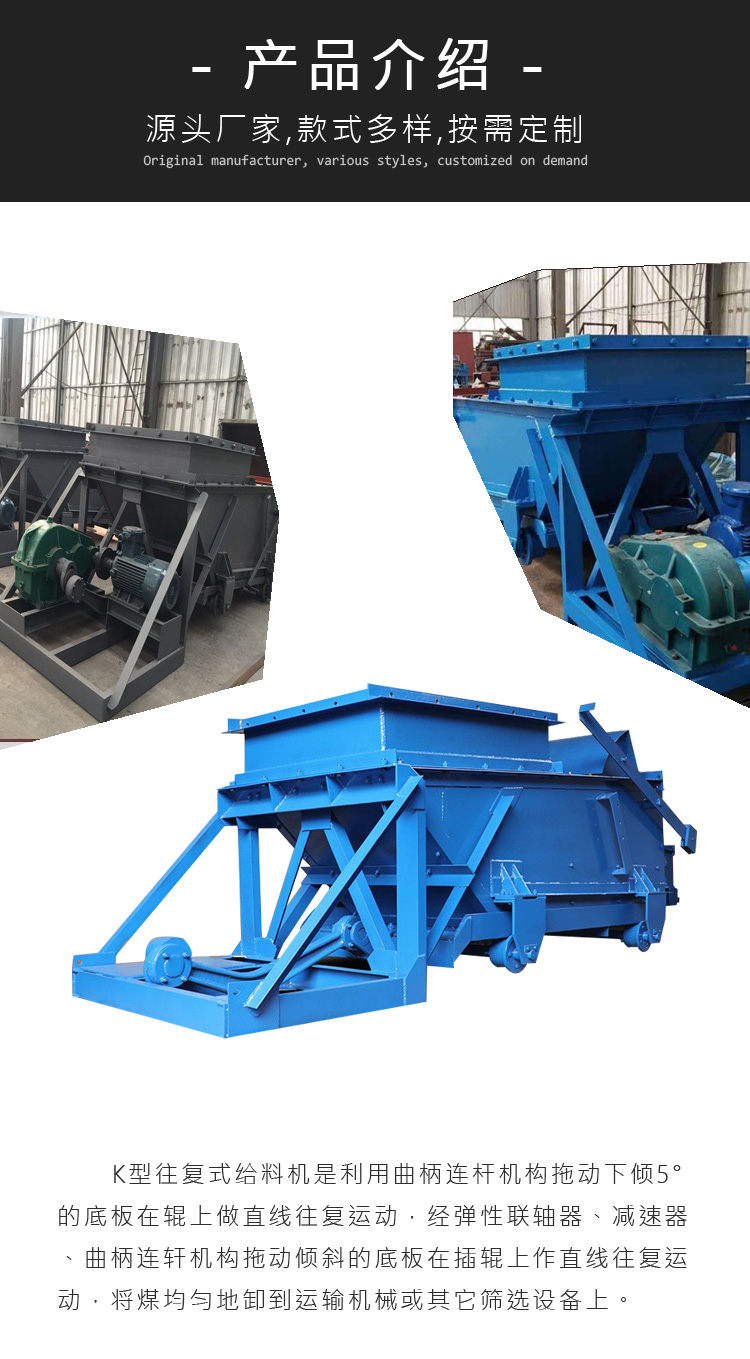 k型往復式給料機適用于煤或粘性小的松散狀顆粒物料的輸送、剛性耐磨,可持續均勻的將物料輸送到其他輸送或篩分設備中去,多用于煤廠、礦山行業中。