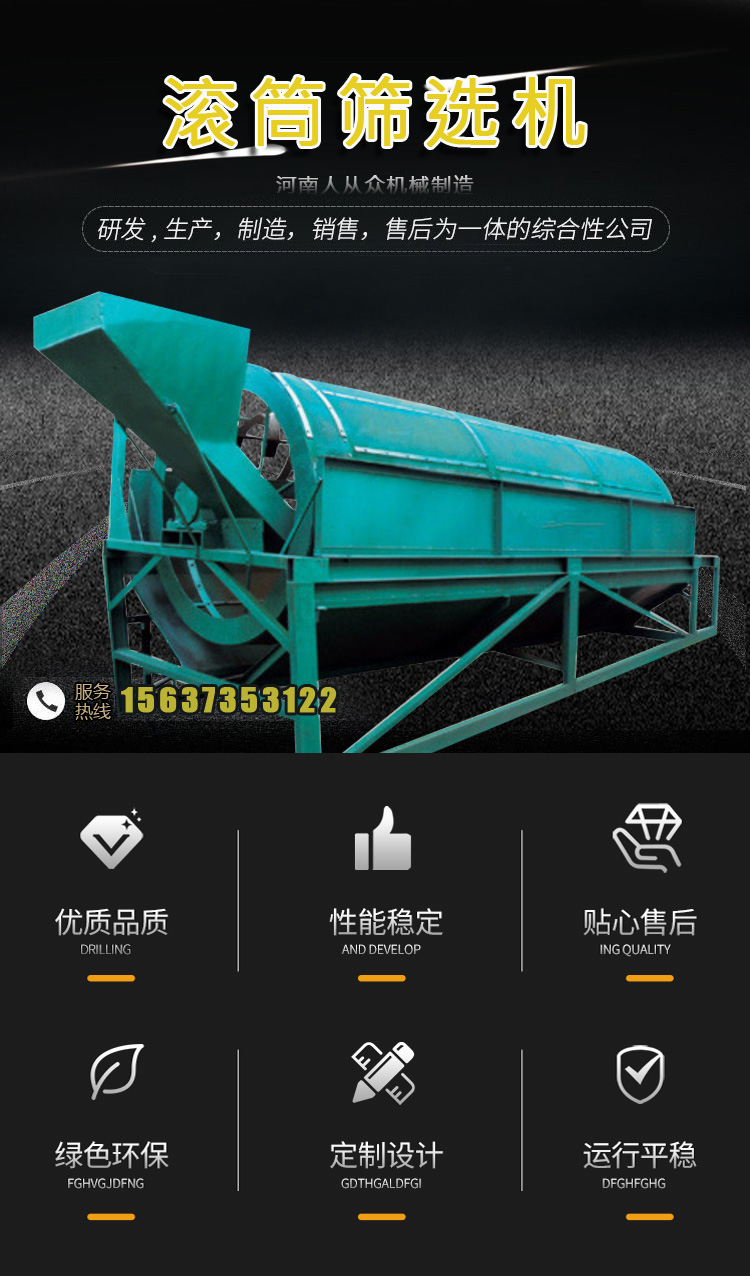 滾筒篩分機(jī)適用于紅棗篩分、大棗核桃干果大小分選篩選機(jī),刨花鋸末顆粒篩分、各種家畜有機(jī)肥的篩分設(shè)備,歡迎來電咨詢定制