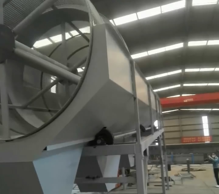 2、滾筒篩2000*11000mm 一臺(tái) 不銹鋼篩網(wǎng) 網(wǎng)孔分別為4*4mm 1500*4900mm 3片 1.5mm絲, 5*5mm 1500*4900mm 1片 1.5mm絲 , 10*10mm 1500*4900mm 2片 2.5mm絲, 25*25mm 1500*4900mm 1片 3mm絲, 帶收料倉(cāng)厚3mm 帶支腿 物料最大塊40mm