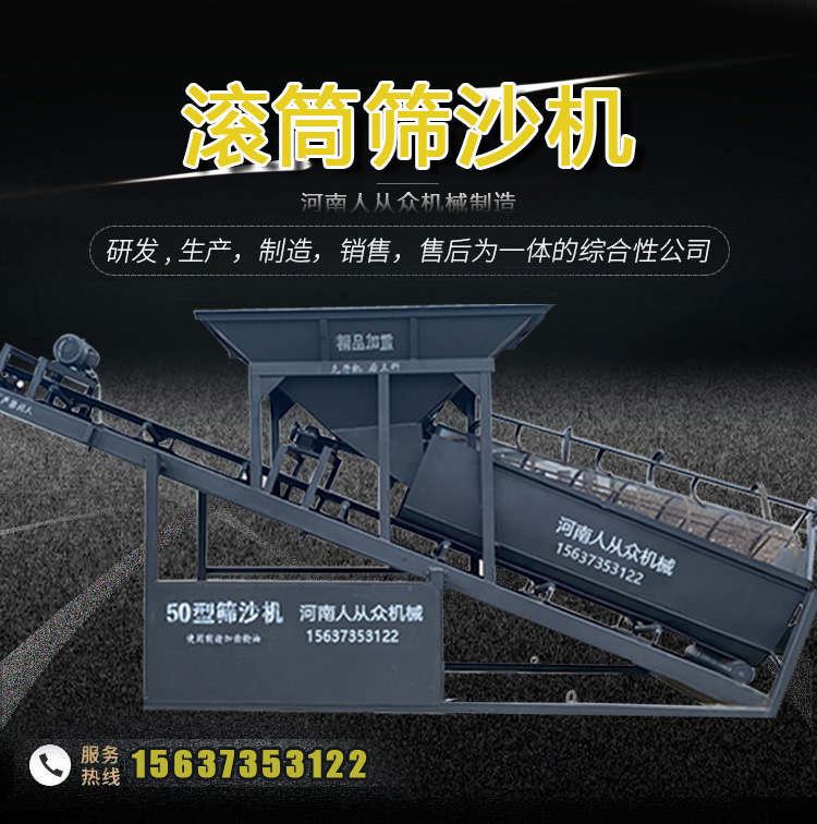 大型滾筒篩沙機(jī)模仿了人工使用斜篩篩砂的情況,整體與地平面處于一定夾角的傾斜狀態(tài),保證篩筒內(nèi)物料流可以連續(xù)滾動多次循環(huán),通過反復(fù)滾動滑動,使砂料充分分散和分離。