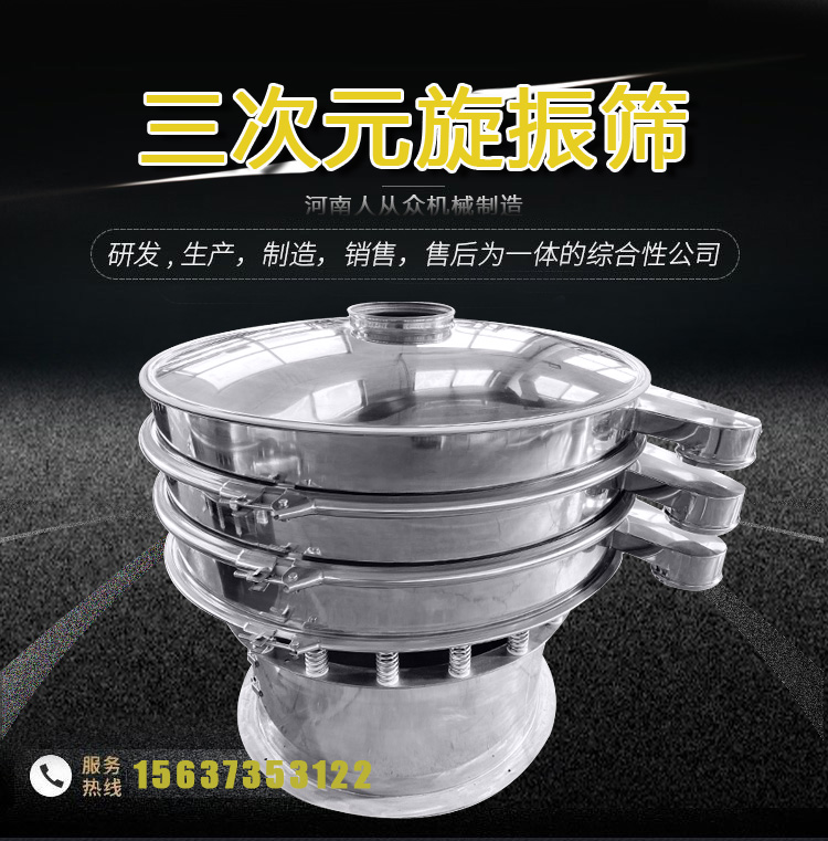 圓形振動篩是一種低噪音、高效率的高精度細粒度粉末篩分機,它比較適合于顆粒、粉末、粘液等物料的篩分和過濾。圓形振動篩使用直立式電機作為激振源,在電機的上端和下端安裝偏心塊,將電機的旋轉運動轉換為水平、垂直和傾斜的三維運動,然后將該運動傳輸到篩面。調整上下端的相位角可以改變材料在篩網表面上的軌跡。